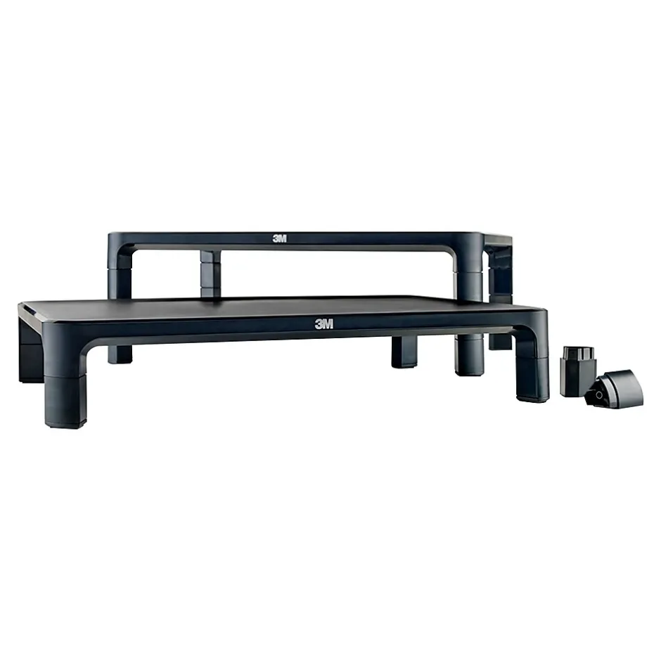 Modern design with stacking columns raise the monitor from 1.7 inch to 5.5 inches in increments of 1.25 inches to an ergonomically correct level.