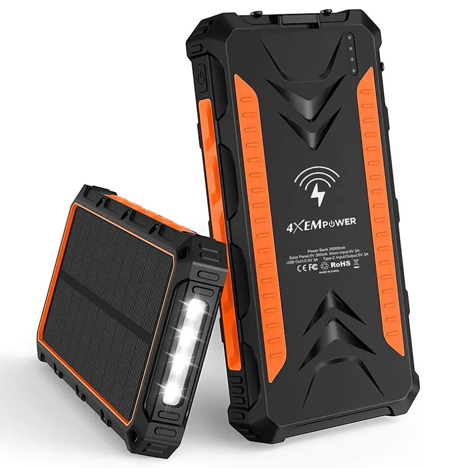 Containing a 20000mAh (milliamp hour) lithium-polymer power bank, the 4XEM Solar Charger charges all your Apple, Samsung, LG, Huawei and other mobile devices via solar energy or its USB ports. Your 20000mAh solar charger comes with 6 mobile device connectors, a charging cable and built-in LED flashlight. The 4XEM Solar Charger is compatible with most Nokia, Samsung, LG, Palm, Blackberry, Apple iPhone, iPod, iPad, Motorola, Sony, Bluetooth, GPS, various digital cameras, PSP, various eBooks, tablets, Nintendo DS, Kindle, and other devices. Use the sun’s rays to charge your mobile devices when a wall outlet or USB power source are not available. Great for travelling, perfect for the outdoors. When charging or transferring data to and from any mobile device, always trust 4XEM Connectivity.