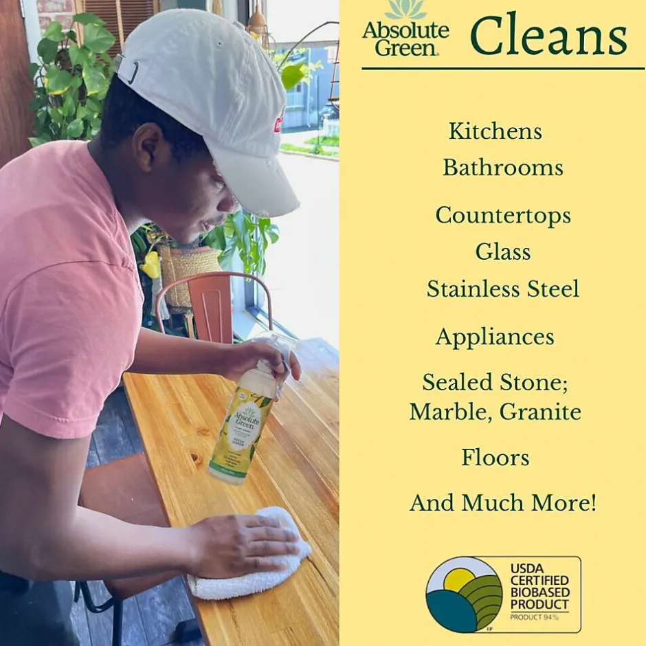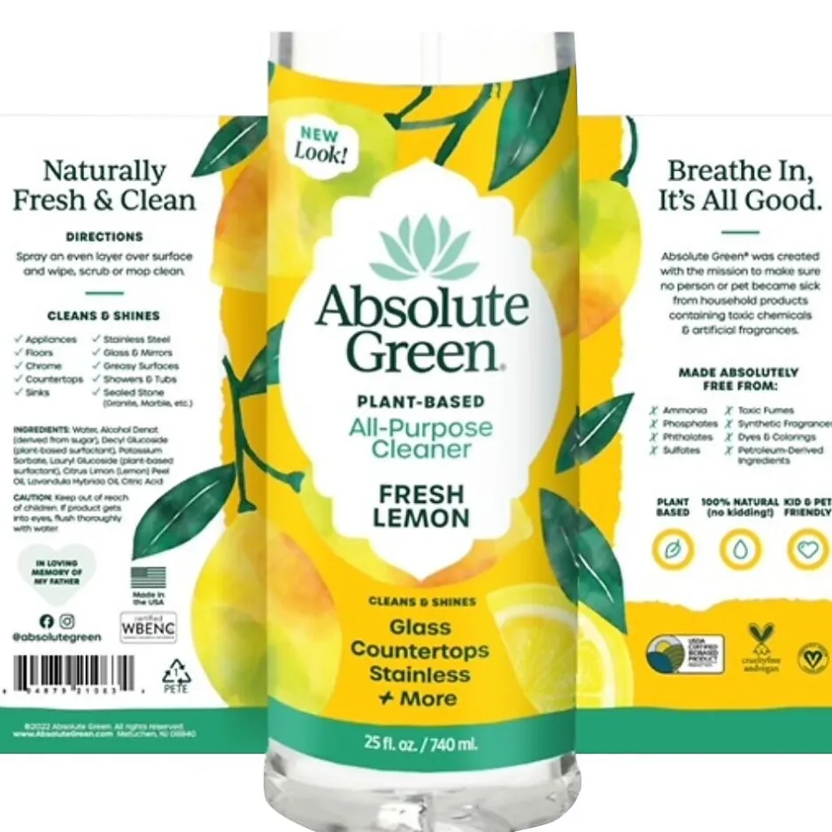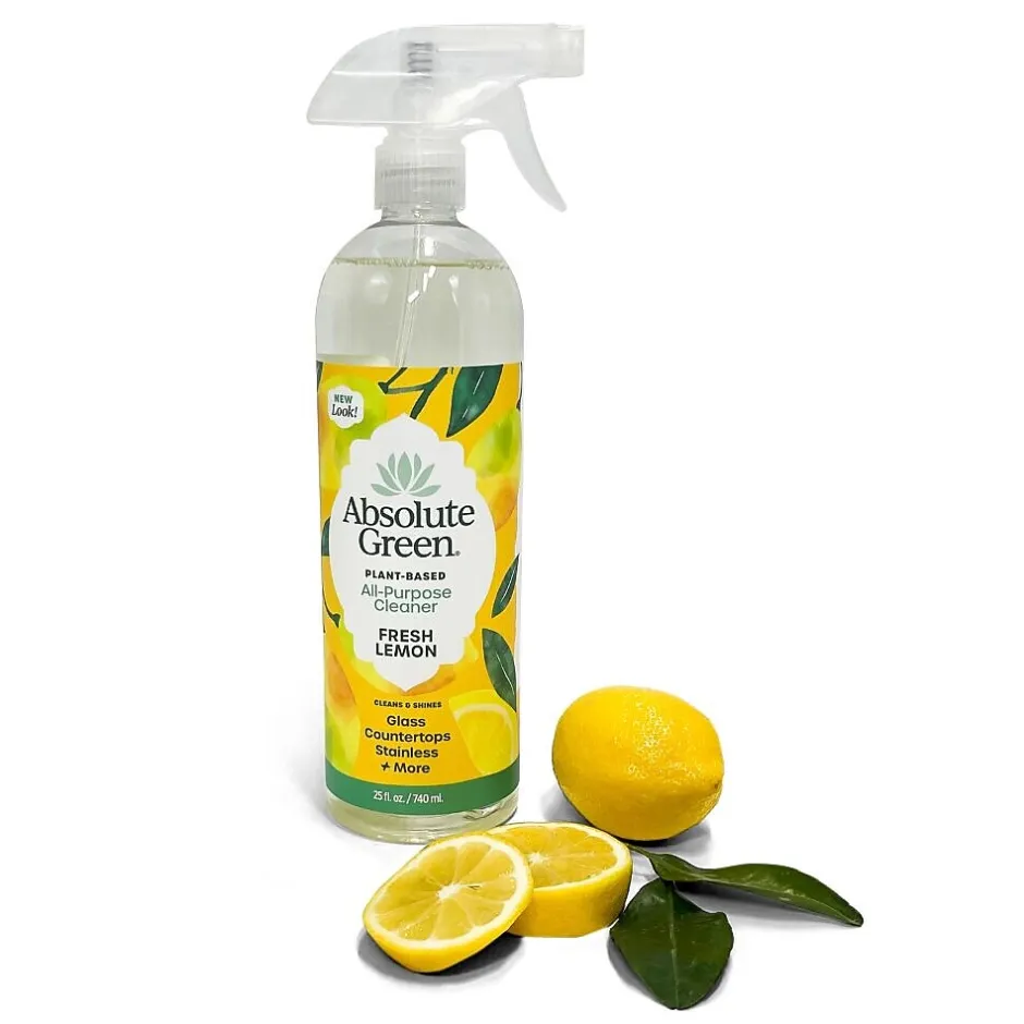 This fabulous Absolute Green Natural lemon cleaner is made from a blend of powerful, plant-based ingredients along with the crisp, clean scent of pure lemons. Effectively cleans all surfaces. This lemon multipurpose cleaner made form real ingredients is a must-have for lemon lovers. No gloves or open windows needed. Breathe in, it’s all good.