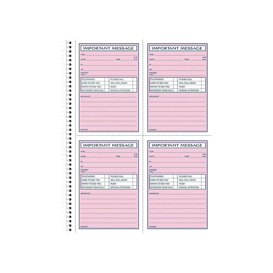 Make sure important information is recorded accurately with this Adams phone message book. Each convenient form features dedicated space for callback numbers, names, and reasons for calling. The two-part carbonless format makes it easy to archive copies of each call for future reference, and the spiral binding lets you quickly flip through previous pages. This Adams phone message book contains 200 form sets, providing an ample supply for busy reception desks.