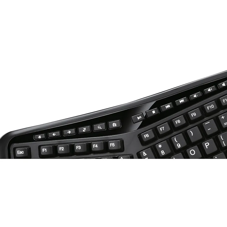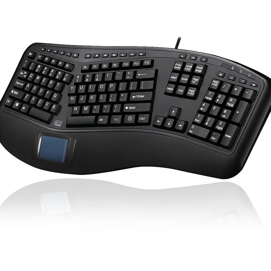 The Adesso Ergonomic Touchpad Keyboard offers you an advanced input device with ergonomic design, and multifunctional features. The design of this keyboard with split key zones and gently sloped encourages natural position of hands, wrists, and forearm in maximum comfort for long use. The keyboard also features an integrated touchpad which can take the place of your mouse, making it easier to control the movement of the cursor on your personal computer.