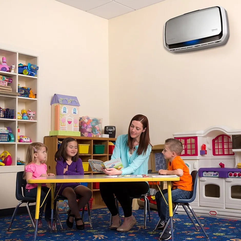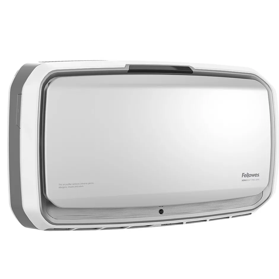 The Fellowes® AeraMax® Pro AM4 with 4-stage H13 True HEPA Filtration effectively removes at least 99.95% of particles as small as 0.1 microns, including allergens, such as pollen, dust, pet dander, and smoke in rooms 650-1100 square feet.Antimicrobial HEPA treatment applied to the True HEPA filter inhibits the growth of odor and stain-causing microorganisms to extend the filter lifespan.Powered by EnviroSmart™ Technology that monitors occupancy and air quality then works harder when you need it. Wall Mount seamlessly integrates in your space creating whole-room circulation. Built to Last- designed and engineered for long term use backed with 5-year warranty.