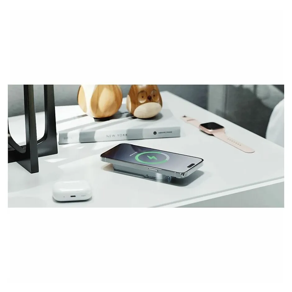 The magnetic power bank’s generous 5,000 mAh battery has enough juice to recharge your phone, earbuds and smartwatch from 0 to 100%.
