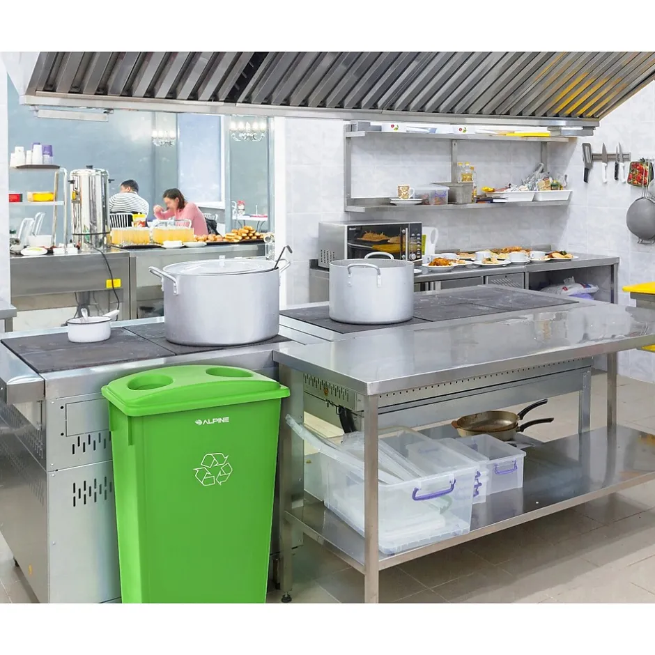 The Alpine Slim Trash/Recycling Receptacle with Bottle and Can Recycling Lid was created for high-traffic areas with limited space but can be utilized in any environment. It can be used for offices, kitchens, restaurants, cafeterias, daycare facilities, your home kitchen, or even a garage. If you are tight on space, the slim design allows you to hold a substantial amount of waste while not compromising valuable space. Each receptacle comes with a bottle and can lid indicating to anyone what type of waste goes into each receptacle. The bottle and can recycling lid helps keep unsightly trash hidden while helping reduce your carbon footprint. It is easy to clean and maintain, as well as withstanding daily wear and tear. Our receptacles are a vibrant lime green hue which makes them easily visible, ensuring everyone is alerted to where to discard their waste. An added benefit is with the help of our Alpine Dolly; you connect several of the Slim Trash Cans, making waste removal quick and easy while reducing worker strain. Our Slim Trash/Recycling Receptacle with Bottle and Can Recycling Lid is a product you can are guaranteed to have for many years.