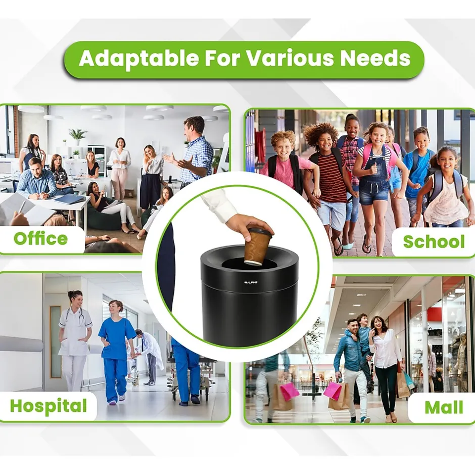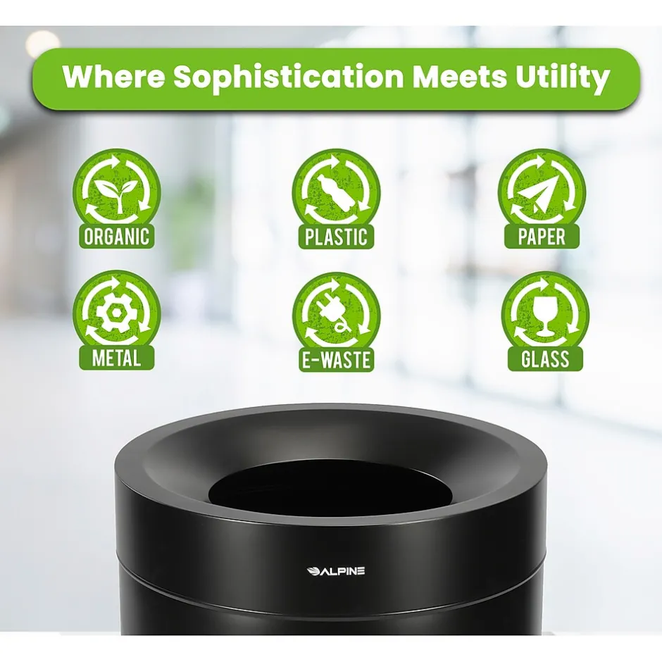 When equipping your business’s interior with waste receptacles, you want to be reassured it will survive constant daily use and also will aesthetically add to your environment. The Alpine matte black trash can is the perfect color to add an upscale and visually appealing element to your decor. It will add a modern feel for your customers and show that you have taken the time to invest in a high-end, trendy accessory.