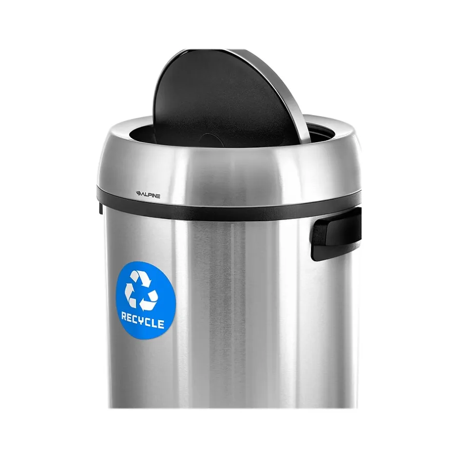 When equipping your business’s interior with waste receptacles, you want to be reassured it will survive constant daily use and add to your company’s aesthetic.With our modern, 17 Gallon Stainless Steel Indoor Recycling Receptacle with Swivel Lid, you can be confident you’re getting an everlasting product that will help maintain cleanliness in your facilities. To help accommodate a more significant amount of recycling, the 17-gallon capacity will fulfill your foot traffic demands. Included with every purchase is a durable recycling sticker that will identify its intended purpose. The vibrant color of the recycling sticker offers optimal visibility, assuring waste goes into the proper stream. In addition, the lids of the receptacle’s seamless design conceal trash bags and can easily be removed when needed. The large swivel lid will also allow precise and discrete disposal of all forms of waste while keeping unpleasant odors at bay. Our 17 Gallon Stainless Steel Indoor Recycling Receptacle with Swivel Lid will allow you to streamline waste collection in your high-traffic area while adding a touch of modern appeal.
