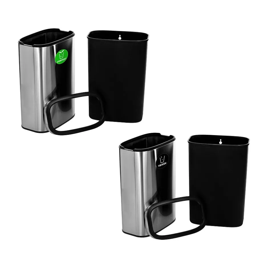 When equipping your business’s interior with waste receptacles, you want to be reassured it will survive constant daily use and add to your company’s aesthetic. With our modern, multi-stream waste management 10.5 Gallon Stainless Steel Slim Open Compost and Trash Stations, you can be confident you’re getting an everlasting product that will help maintain cleanliness in your facilities. To help accommodate a more significant amount of compost and trash, the 10.5-gallon capacity will fulfill your foot traffic demands. Included with every purchase is a durable compost and trash sticker that will identify its intended purpose. The vibrant colors of the stickers offer optimal visibility, assuring waste goes into the proper stream. In addition, the lids of the receptacles are seamlessly designed to conceal trash bags and be easily removed when needed. Its slim design allows it to fit comfortably in tight spaces and does not compromise on capacity. As a result, you gain a sleek and sufficient waste management station. Our 10.5 Gallon, Stainless Steel Slim Open Compost and Trash Stations will allow you to streamline waste collection in your high-traffic area while adding a touch of modern appeal.