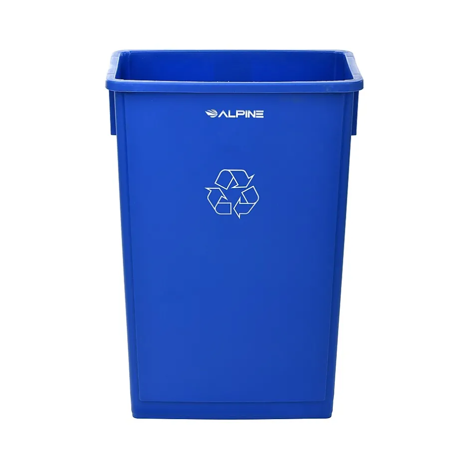 The Alpine 23 gal. commercial-grade trash can is stylish and compact, making it easy to fit into any office or commercial space, and features a large and clear print label, making it a noticeable trash disposal solution even from far away. The trash can is designed with anti-jam reinforcements and a swing lid for easy disposal of trash. With the help of the included dolly, you can connect several trash cans (sold separately), making waste removal quick and easy while reducing worker strain. The swivel caster wheels allow the dolly to be moved in any direction and easily glide over surfaces. The trash can is designed with rounded edges to prevent scratching and scuffing walls and other surfaces, and the dolly is equipped with a foot pedal release, so workers can effortlessly disconnect the dolly when needed.