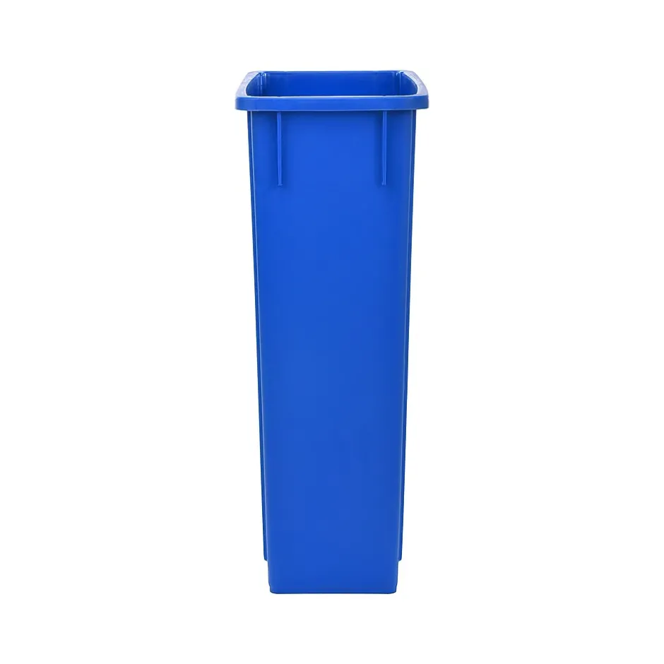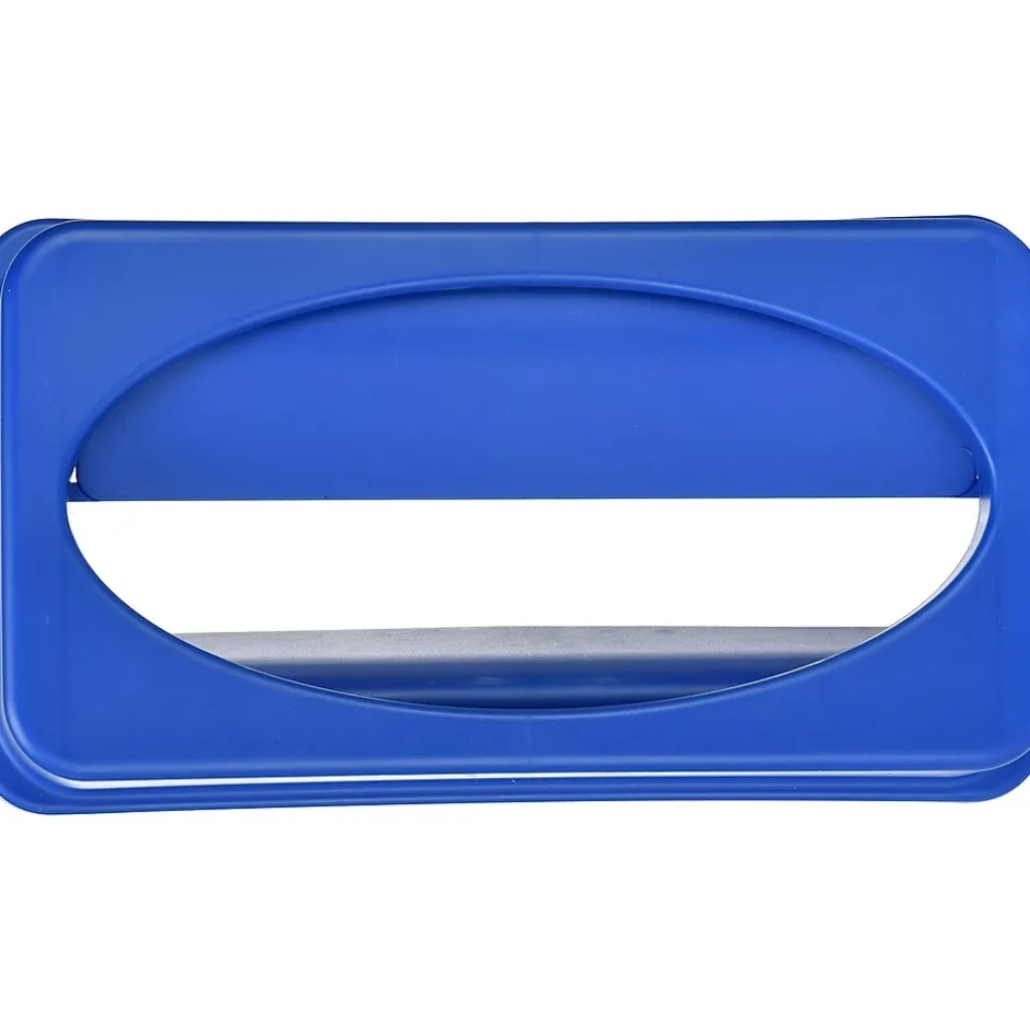 - Blue recycling bin, drop slot lid, and trash can dolly