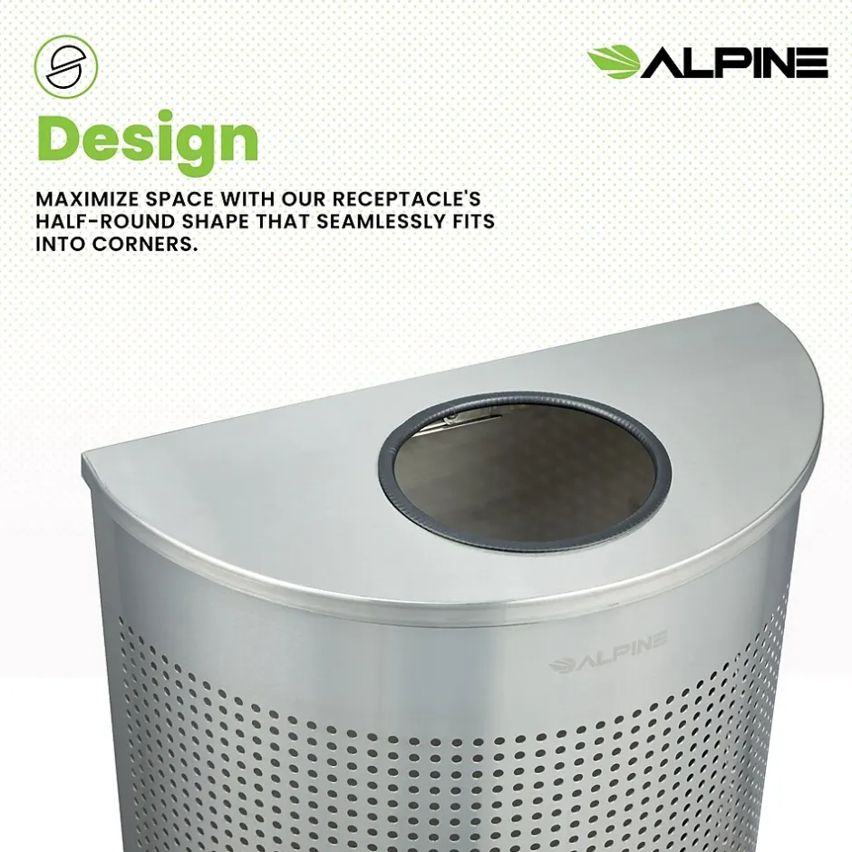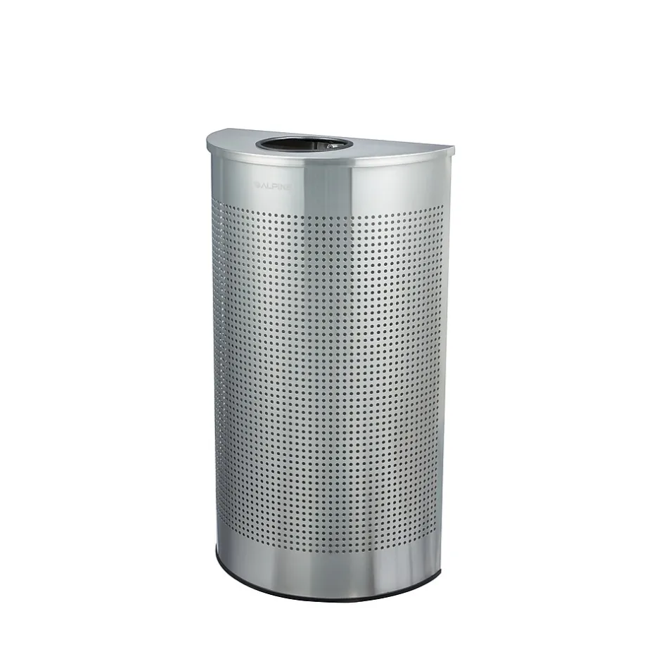 Elevate your waste management with this 12-gallon stainless steel perforated half-round trash can. Crafted from premium stainless steel, it combines durability with a sleek, modern design. Enhanced with a perforated design, this stainless steelwaste bin not only adds a touch of modern elegance but also improves airflow to help control odors effectively. The carefully spaced perforations ensure optimal ventilation while maintaining a clean and sophisticated appearance, making it an ideal choice for maintaining fresh and hygienic environments in kitchens, offices, and public spaces. This trash can’s half-round shape fits neatly against walls or counters, optimizing space efficiency. With its rust-resistant material and easy-to-clean surface, it ensures long-lasting use and minimal maintenance. The sturdy construction and smooth edges add to its durability and safety, while the removable lid secures trash bags in place and facilitates hassle-free emptying. Upgrade your space with this stylish and functional essential, designed to meet the demands of both residential and commercial settings.
