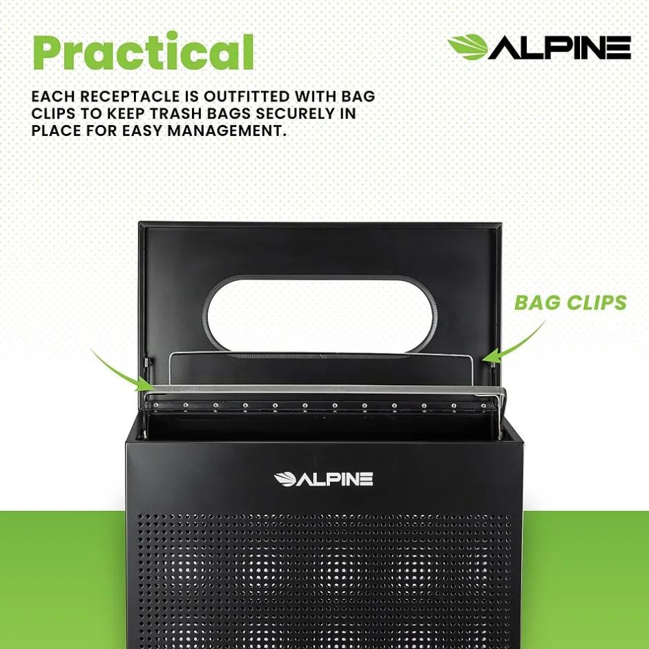 - Each receptacle is equipped with secure bag clips, ensuring trash bags stay firmly in place for effortless waste management
