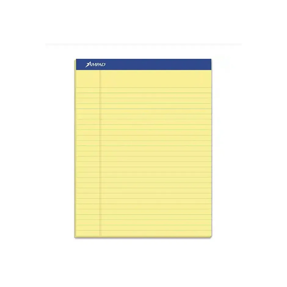 Show your concern for the environment when you purchase this Ampad notepad containing 50 percent post-consumer content and 100 percent recycled materials. The wide-ruled sheets offer ample space for large handwriting, while the canary yellow paper color contrasts pencil and pen markings to make your writing pop. Take this versatile notepad outside or to the coffee shop for doodling or journaling, thanks to the sturdy backing, which provides a stable writing surface anywhere you go.