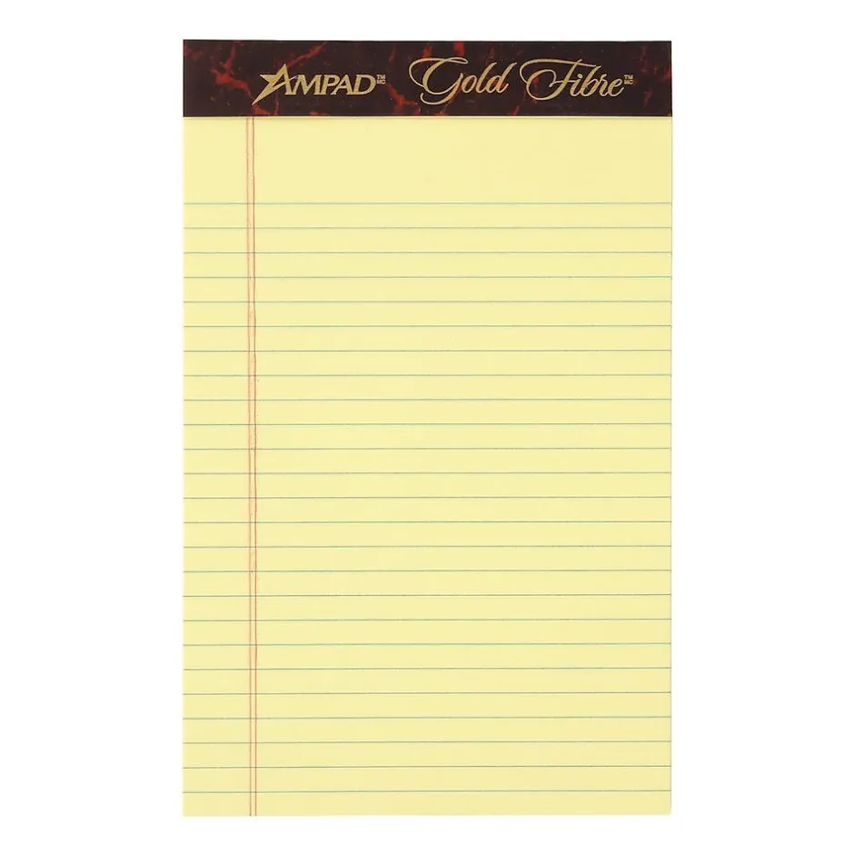 Write down lists, ideas, and other notes with this canary writing pad. Featuring a strong rigid chipboard back, this writing pad lets you easily produce smooth, legible lines, while the canary coloring helps writing stand out. This Ampad Gold Fibre writing pad has 50 sheets and micro-perforated paper, keeping pages neat and clean after detaching individual sheets.