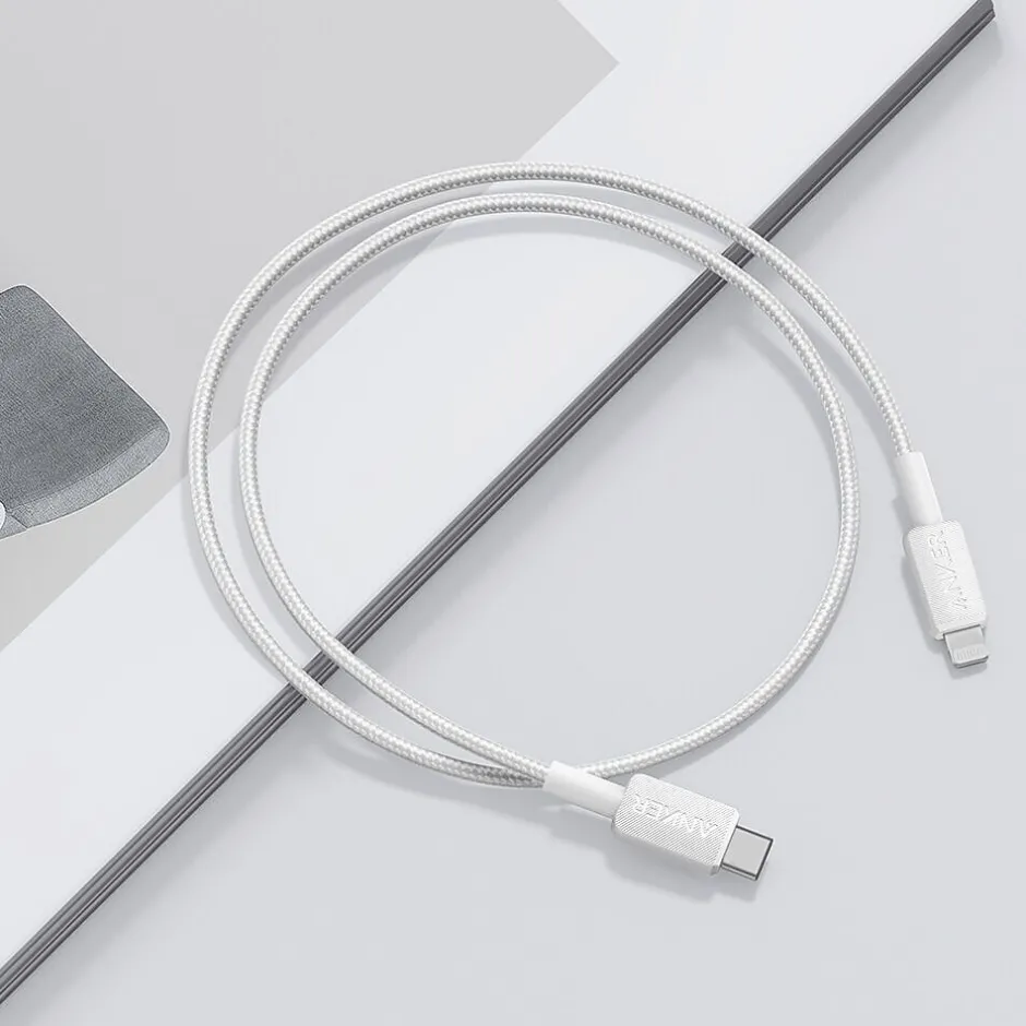 - Features a USB-C connector on one end and a Lightning connector on the other, allows it to connect to modern USB-C chargers and devices, providing power and data transfer capabilities for Apple devices with a Lightning port