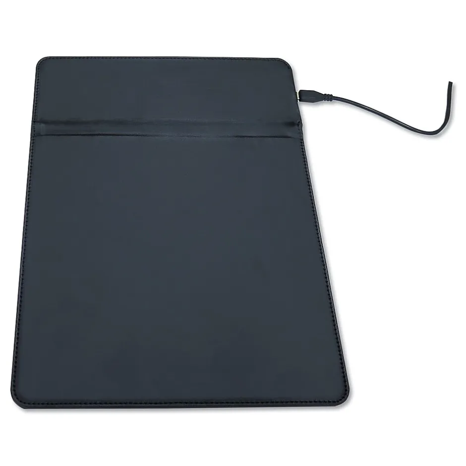 Charge mobile phone wirelessly with our Qi-Certified Wireless Charging Pad. Plug the provided micro-USB cable into any USB power source and power away. Compatible with iPhone 8/8Plus, iPhone X, Samsung 6/6 Plus and later models. Pad can be used completely flat or fold the panel up for an angled view. Features a smooth writing surface. Made of leather-like material.