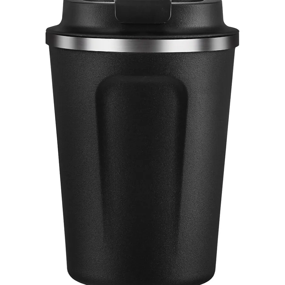 The ASOBU 13 Oz. Cafe Compact Insulated Travel Mug is brilliant in its simplicity. A no-frills yet sleep and classy look makes this the ideal coffee cup. What makes this cup unique is the compact size that is big enough to hold your morning cup of joe but easily fits under Keurig coffee makers and into standard car cup holders. The cup is constructed of durable, stainless steel built to last a lifetime (and is backed by our guarantee)! The matte finish and dented sides give it the good grip you need when sipping your hot beverage. Completed with an easily removable spillproof lid, the black Cafe Compact Mug is a real keeper!