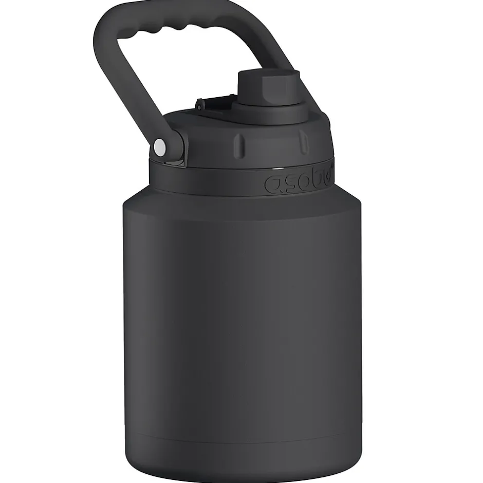 The Stainless Steel Mini Jug from ASOBU is a 33 oz. stainless steel insulated water jug that keeps liquids cold up to 24 hours and hot up to 6 hours. The easy access top makes filling it and putting in ice cubes a snap. A pop-up straw makes drinking convenient. This Black Mini Jug also has an ergonomic carry handle that provides easy portability to take it along wherever you go.