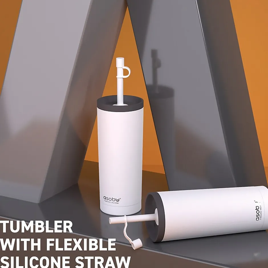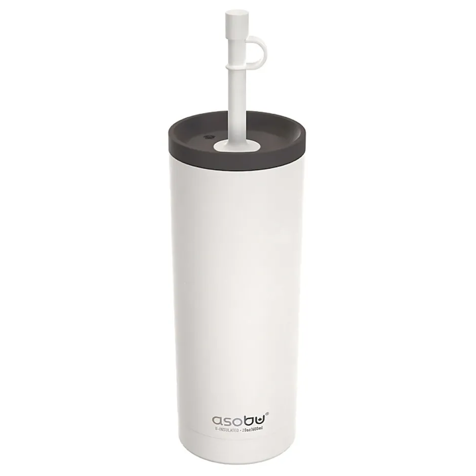 The White ASOBU 20 Oz. Super Sippy Insulated Coffee Tumbler lives up to its name! The body is a double wall, insulated cup, which means your beverage stays cold or hot for hours. The 2-piece straw has a bendable silicone top on the outside, while the rest of the straw is made of Tritan to ensure it performs effectively day after day. The wide screw-off lid makes it easy to fill with liquid and ice cubes.