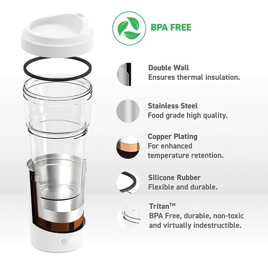Why should hot drinks get all the attention? ASOBU has created the ideal travel mug for all the iced coffee lovers out there: the White Asobu Cup’o’ccino! Designed especially for cold drinks, the Cup’o’ccino features a see-through window (so you’ll know when you need a refill), an easy sip lid, and a triple layer design that keeps your iced macchiato extra frosty. Its durable Tritan body is surrounded by a double-walled, vacuum-insulated stainless steel base for maximum chill.