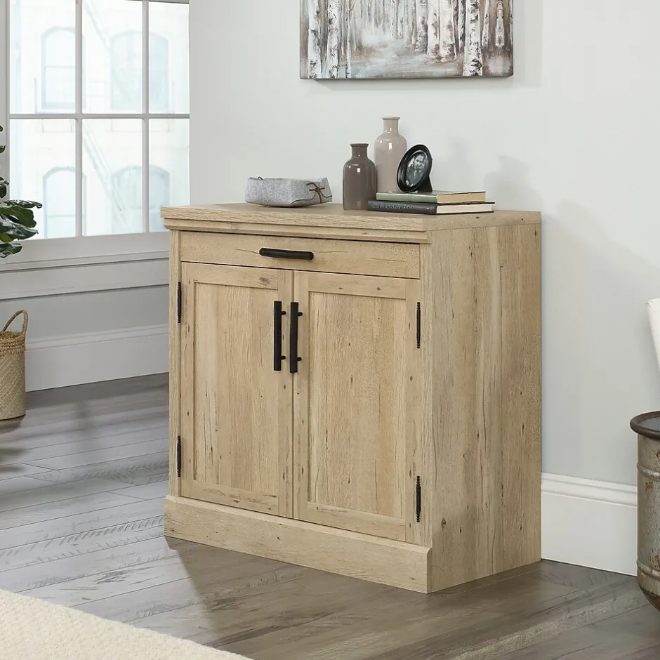 Storage space is a mustadd stylish storage to your office or workspace with this library base from the Aspen Post collection. This library cabinet features a durable, 1″ thick top that offers open storage for what really matters to you whether that’s your favorite books, prized family trinkets or photos of your friends. This 2 door storage cabinet also includes a storage drawer with metal runners and safety stops for your small office supplies or other items you need handy. Behind this library file cabinets double doors are hidden storage with a large adjustable shelf so you can store books, papers, and other home essential you don’t need sitting out. Finished innatural Prime Oak finish, this library base cabinet offers a storage solution you may not have even known you needed. Your home storage should be as trendy as it is useful and this 2 door base cabinet from the Aspen Post collection is just that.