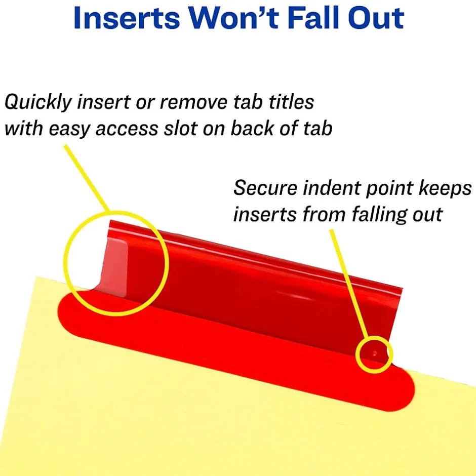 - Tab inserts won’t fall out; special tab design keeps inserts secure and easy to access