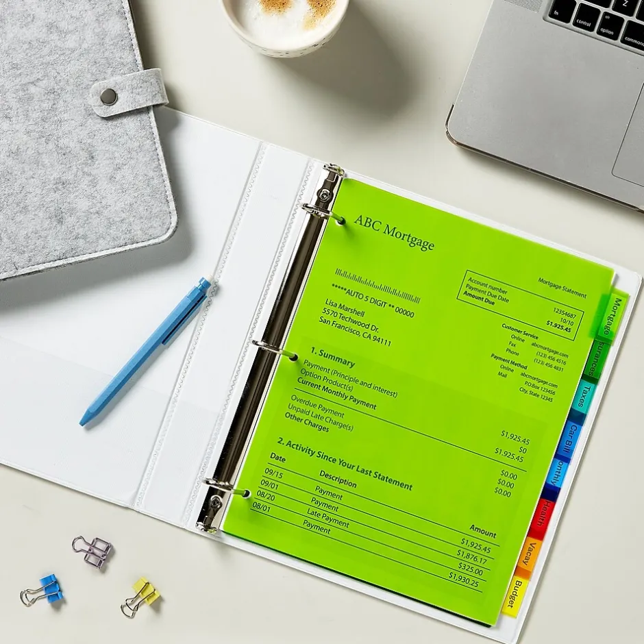 - Each 3-ring binder divider tab features an easy access slot as well as a secure indent point to lock inserts in place