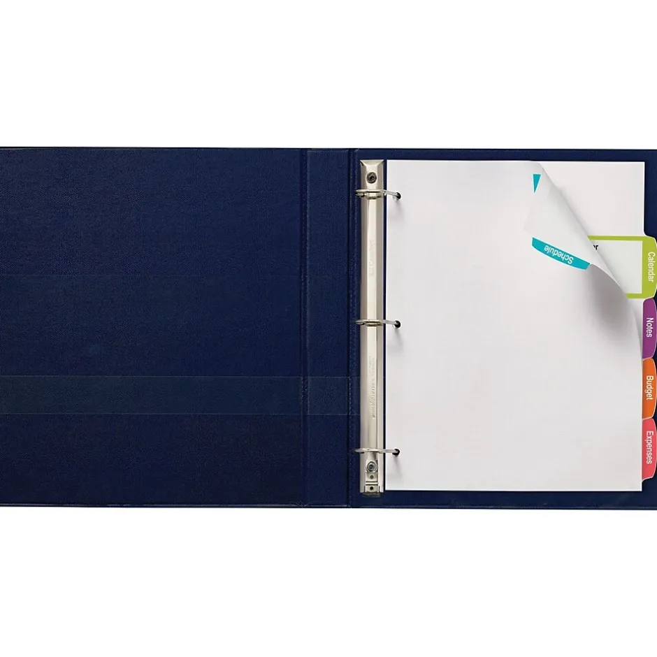 Create customized dividers with all the information you need, using these Large White Label Tab Dividers. The large labels extend from the arched-shaped tabs onto the divider bodies, giving ample room to add section contents, logos or designs. Simply personalize your tab labels using our free templates and designs at avery.com/print. You can print your labels in black and white, or create a custom color set, using a laser or inkjet printer. The print-to-the-edge Easy Peel(R) labels, featuring our Pop-Up Edge(R), make it fast and simple to personalize your tabs, with no inserts required. You simply bend back the label sheet, peel your label and apply to the divider tabs. A bonus standard label sheet is included for the back of your tabs.
