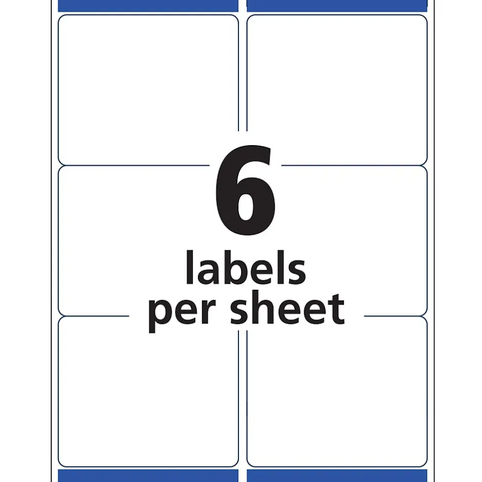 - Six labels per sheet, 50 sheets per box, 300 total labels