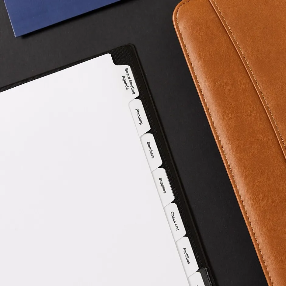 - Get a professional, printed-on look with clear labels that virtually disappear on the white divider tabs