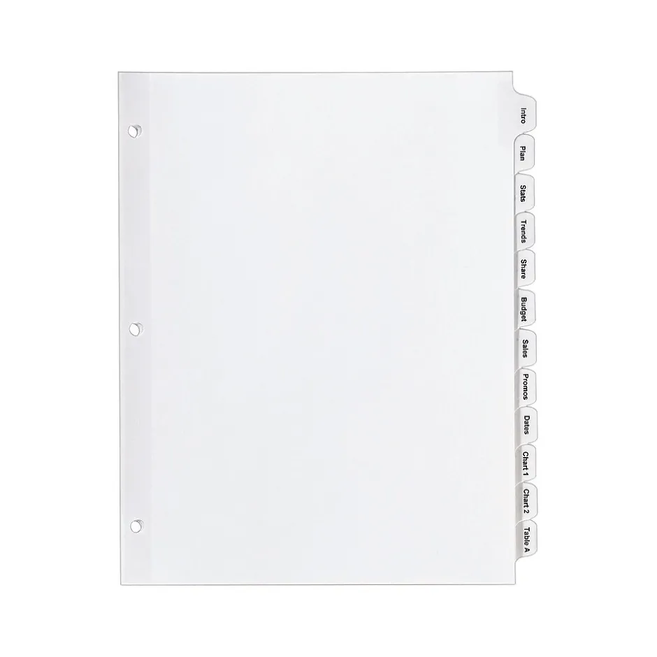 - Get a professional, printed-on look with clear labels that virtually disappear on the white divider tabs