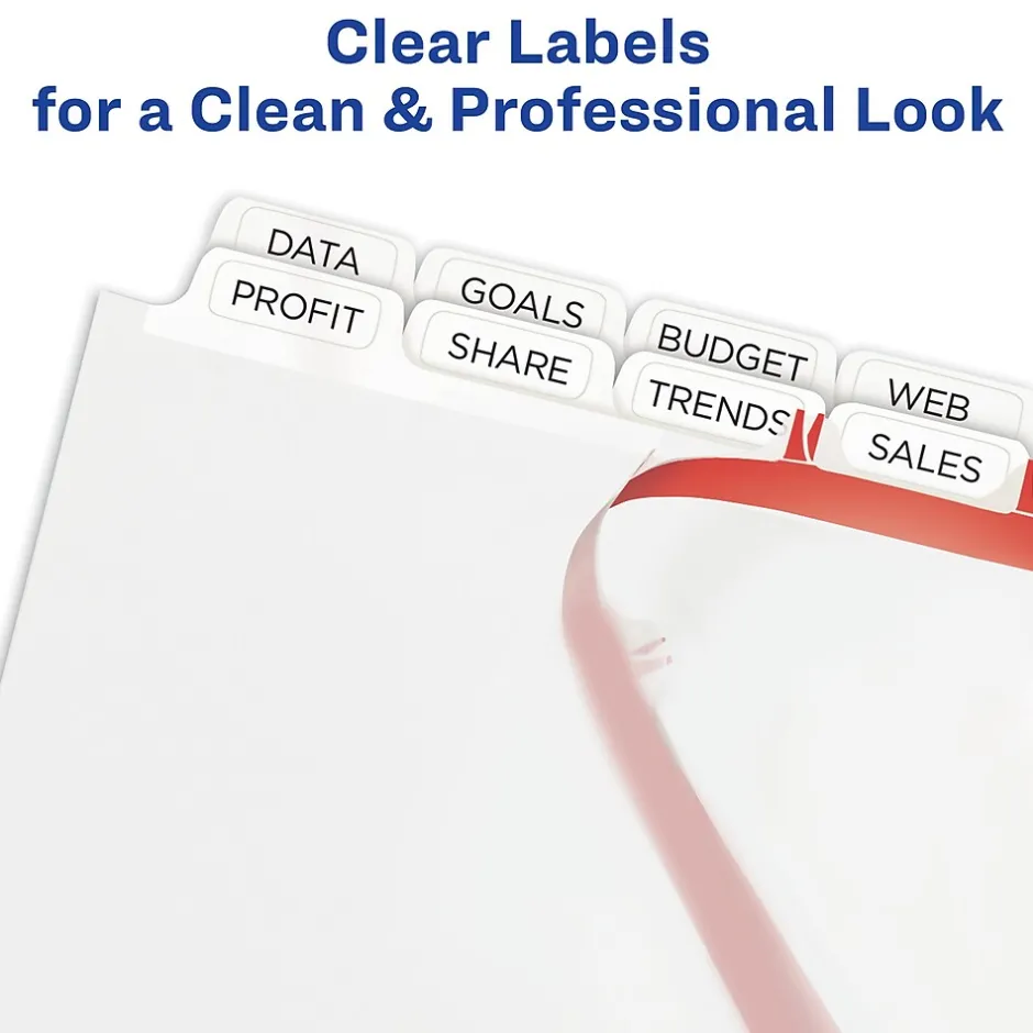 - Clear labels virtually disappear giving tab dividers a printed-on look