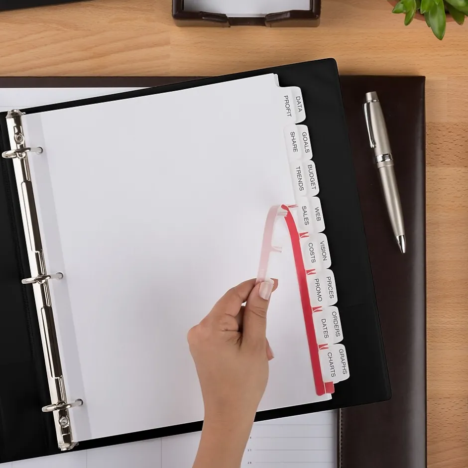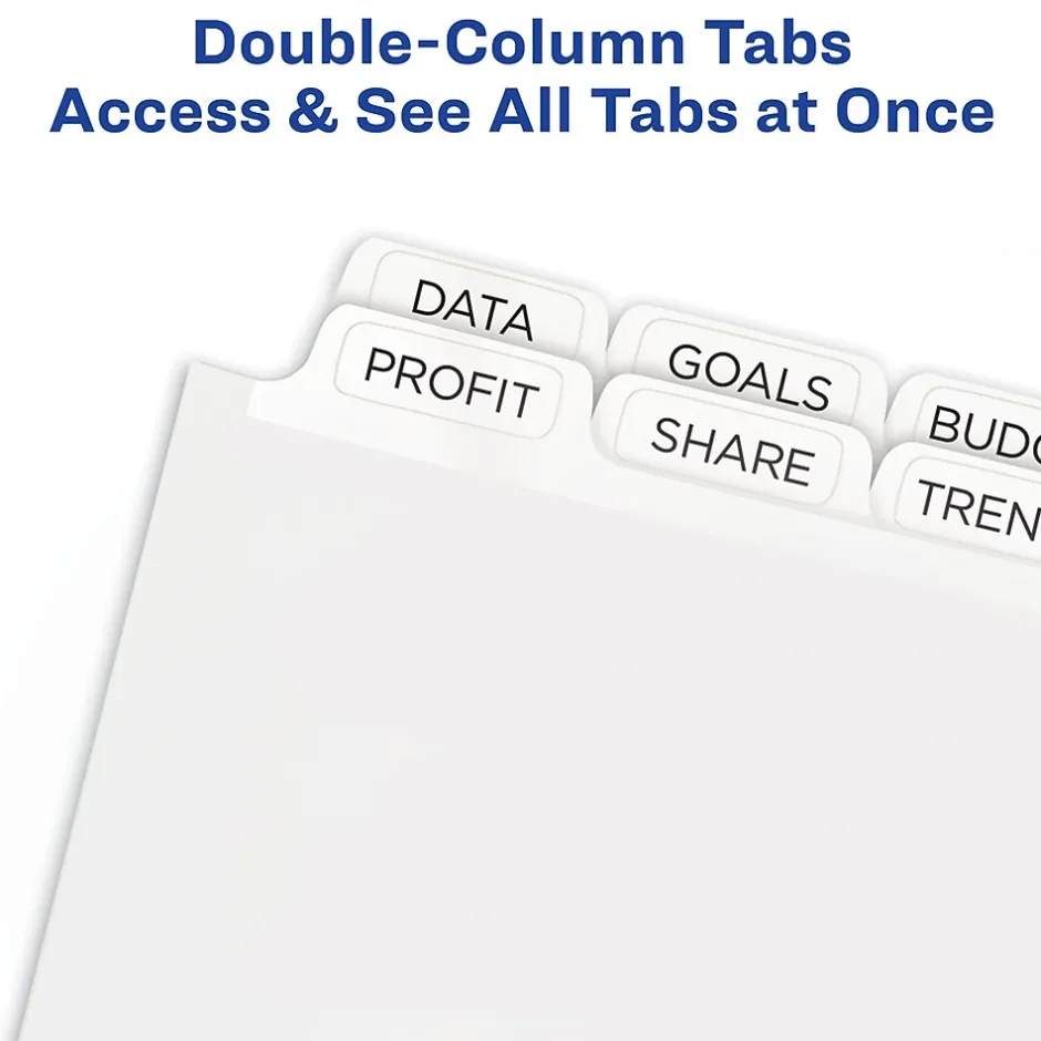 - Color: White Double-Column Dividers with Clear Tab Labels