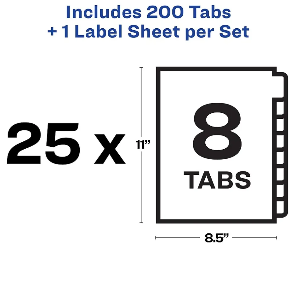 - Label all 8 tab dividers at once with the Index Maker Easy Apply Label strip that results in 25 perfectly aligned sets of tabs