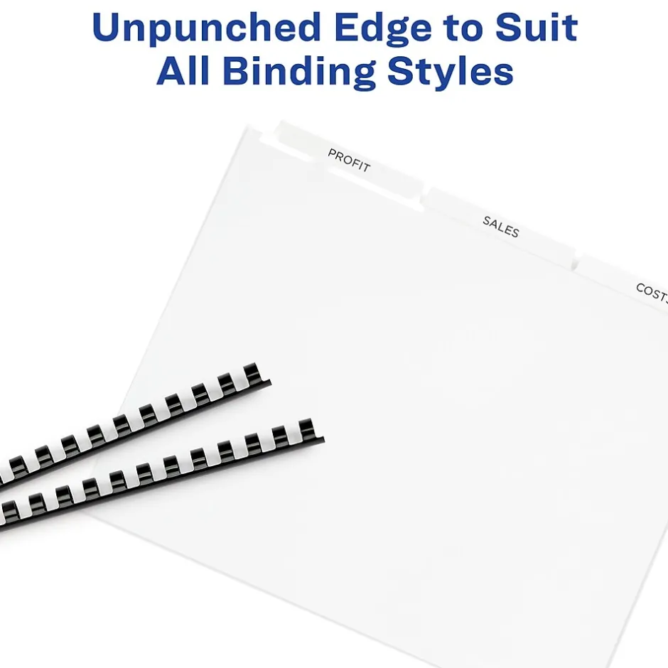 - Customize and organize your bound documents with tabbed dividers that feature an unpunched edge to suit any binding system
