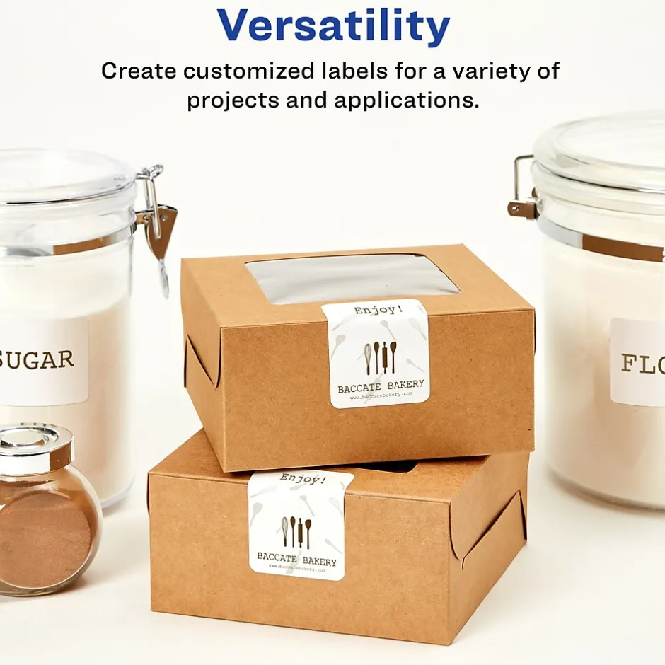 - Create professional looking labels with matte white labels that let your colors pop; perfect for food labels, diskette labels, gift label stickers, product labels and more