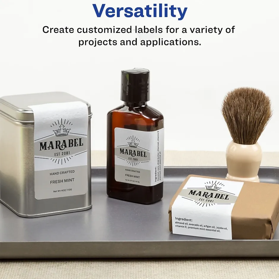 - Printable blank labels compatible with both inkjet and laser printers