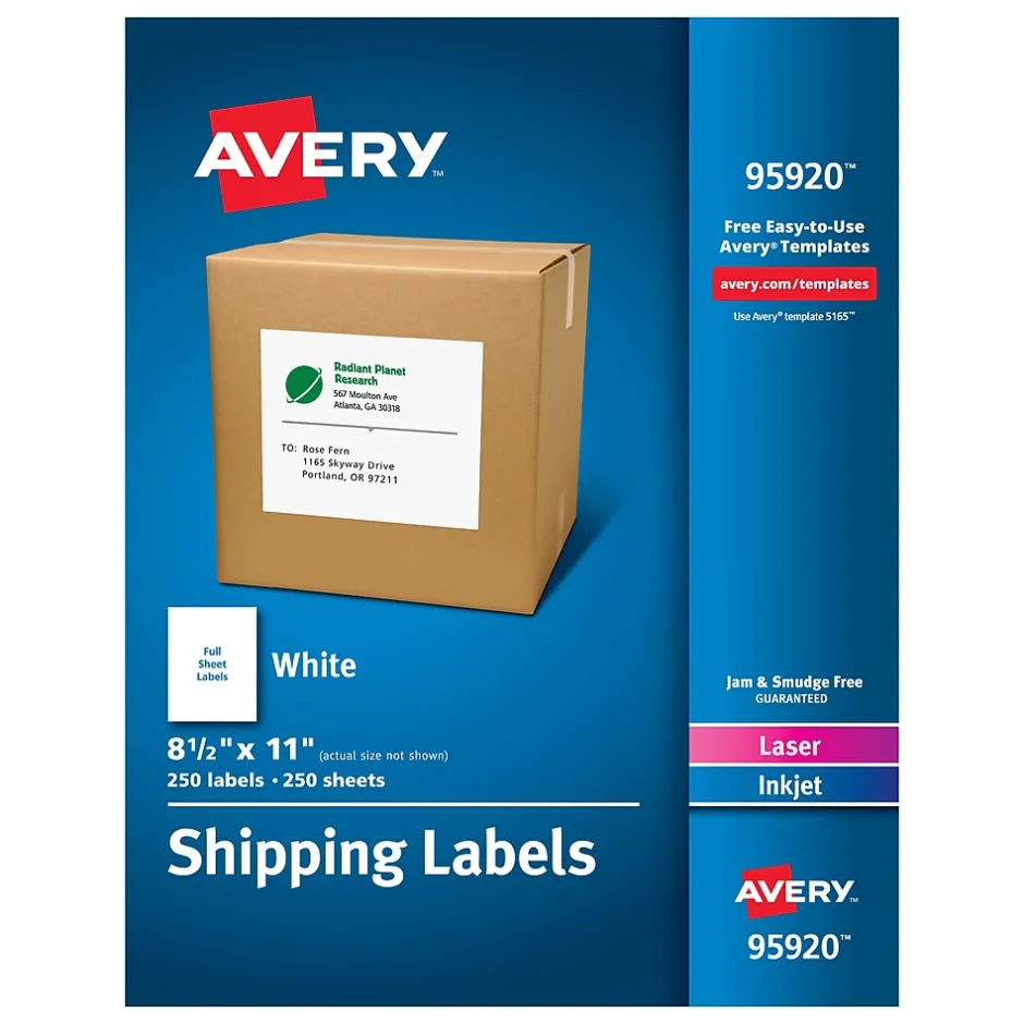 Create professional-looking packages quickly and easily with White Shipping Labels. These bright, white labels offer sharp, clear print and are perfect for shipping, mailing, organizing, crafts and other large labeling projects. They’re easy to customize with your logo and information. The labels are made from Forest Stewardship Council (FSC) certified paper and are compatible with both laser and inkjet printers.