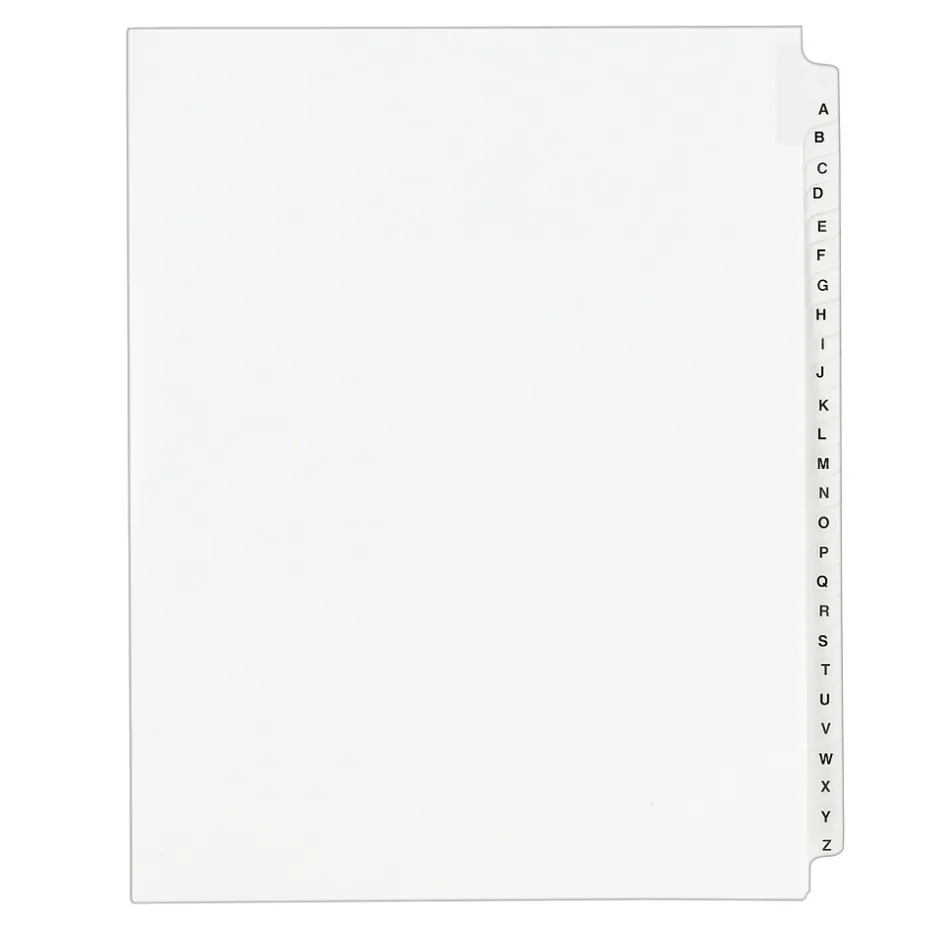 You have the right to organized and professional-looking files. This Standard Collated Legal Divider Set features Tabs A-Z so it’s perfect for index briefs, legal exhibits, mortgage documentation files and more. White paper stock with clear, Rip Proof(TM) reinforced tabs are preprinted on both sides using Helvetica bold type for ease of use, and the unpunched binding edge gives you the freedom to fit practically any binding system. Here’s evidence these dividers will do your files justice.