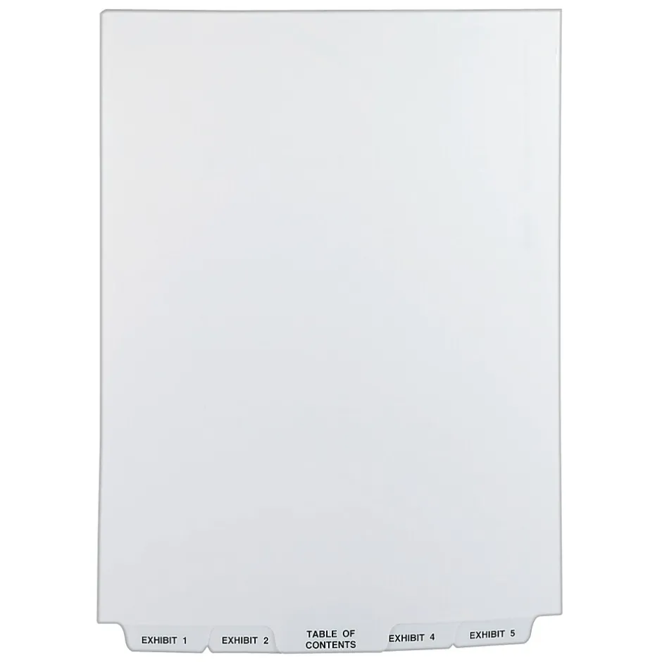 Guilty of disorderly files? It’s time to crack down on chaos. This Premium Collated Legal Divider Set features bottom tabs 1-25 and a Table of Contents tab, so you can organize index briefs, legal exhibits, mortgage documentation files and more. The 8-1/2″ x 11″ white paper stock features Rip Proof(TM) reinforced tabs that are preprinted on both sides using Helvetica bold type, so you can easily access the documents you need. Indexes can fit any binding system because the binding edge is unpunched. It’s easy to bring order to your own files. Go ahead, throw the book at disorganization.