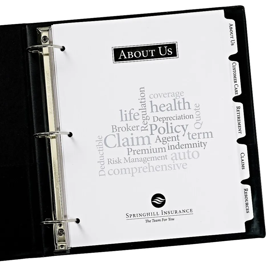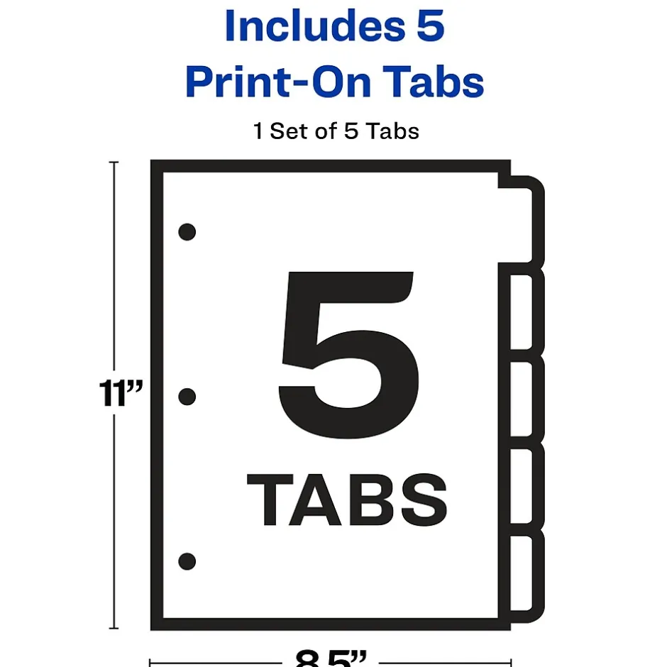 Create a lasting impression with our customizable Print-On(TM) Dividers. Perfect for client proposals, service menus or presentations, they’re three-hole punched and ready to use. They’re also great for wedding planners, scrapbooks and recipes. In just one pass through any printer, you can personalize both the divider sheet and tab for a unique, professional-looking presentation in minutes. No labels to apply. Easily create and format high quality projects with our free templates and designs at avery.com/print.