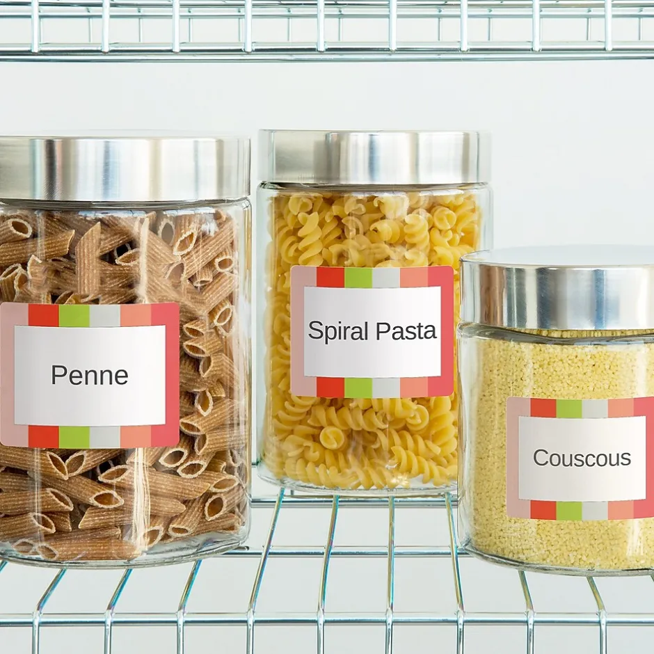 - These versatile medium-sized rectangle labels can serve as shipping labels, jar labels, food packaging labels, bin labels, product labels, and more