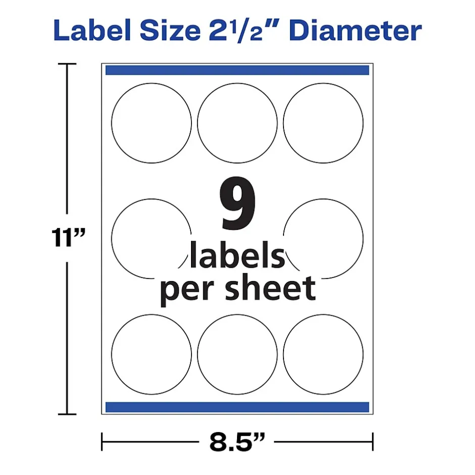 - Easily customize your white round labels with free templates and designs at avery.com/templates; label sheets are compatible with laser and inkjet printers