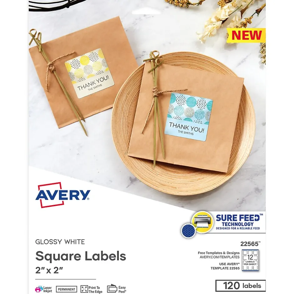 Give projects an eye-catching sheen with these premium, glossy square labels. The classic white surface of these 2″ x 2″ blank printable labels allow your text and colorful graphics to stand out, resulting in a polished and professional finish. Our Print-to-the-Edge feature allows you to create eye-catching full bleed labels with sharp text and crisp images with no border or margin. Avoid printing misalignments and jams and ensure a clean printing job with our Sure Feed(R) technology. These small square labels are quick and easy to apply with our patented Easy Peel label sheets with Pop-up Edge. Simply fold the sheet back to display the label edges for convenient and fast peeling. Once applied, the permanent adhesive ensures the label stickers hold fast to smooth surfaces like paper, cardboard, plastic, glass and painted metals. Effortlessly create customized sticker labels with your own text, art and photos, or use the free templates from Avery Design & Print to design QR code labels, packaging labels, soap labels, glass jar labels, gift label stickers and more. Try it out today at avery.com/templates. This item comes with 12 labels per sheet and includes 10 sheets for a total of 120 blank white labels.