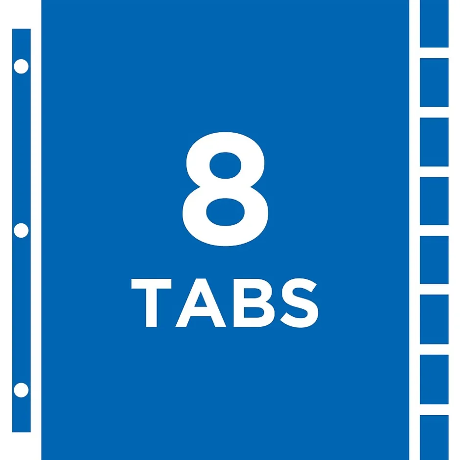 Bring a professional look to reports, proposals or other document collections with these eight-tab sheet protectors. The multicolor tabs make it easy to find papers stored inside binders, while the durable polypropylene construction stands up to frequent handling. Each of these Avery Protect ‘n Tab sheet protectors features prepunched edges and a top-loading design for simple setup.