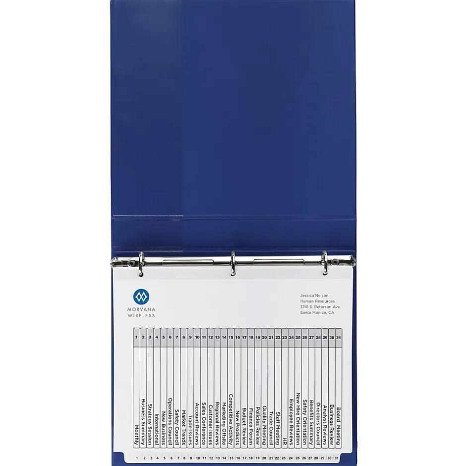Organize your projects in moments with Avery Ready Index monthly binder dividers.Each tab is preprinted and uniquely color coded for a professional appearance.Print your own custom section titles and images onto the table of contents sheet without worrying about labels or inserts.Whether you’re creating planners for classes or hosting a presentation, these dividers are ideal for getting everything sorted.Monthly 12 dividers are included with each sheet measuring 8-1/2″x11″. The 3 binder holes are reinforced on both sides of the heavyweight sheet to prevent creasing and tearing. Each divider tab includes additional reinforcement along the edge of each page to distribute stress and resist folding.The printable table of contents is dual compatible with both laser and inkjet printers. This sheet can also be printed in either portrait or landscape so that your projects can be displayed in any orientation. Just flip the sheet to view the other layout on the opposite side. Try out free templates for these dividers and check out the Avery Design & Print software at avery.com/templates.