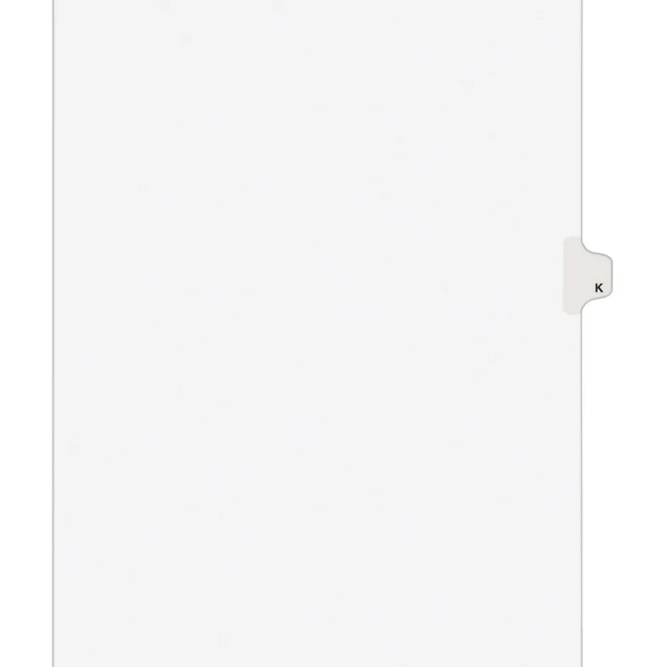 Avery® Tab K alphabetical individual set in white color is perfect choice to organize your index briefs, legal exhibits, mortgage documentation files and more.