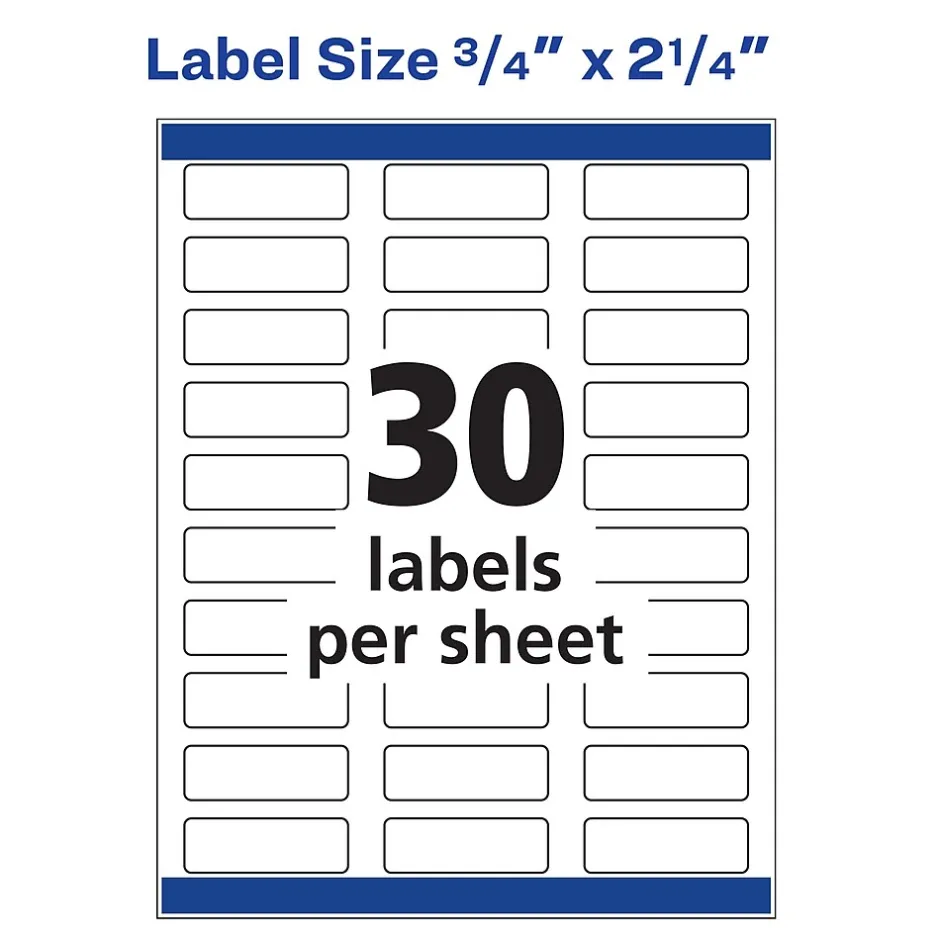 - The small address labels are sized 3/4″ x 2-1/4″