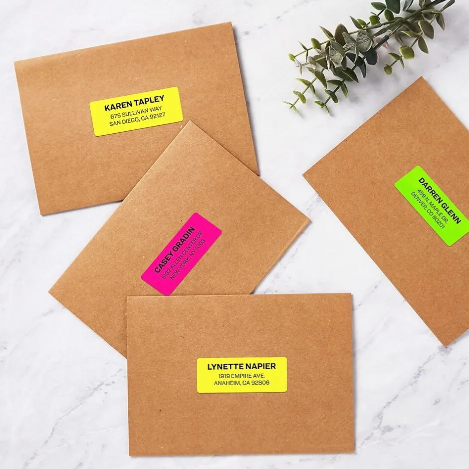 - Make your next project or shipment stand out with the assorted pack of green, pink, and yellow neon labels