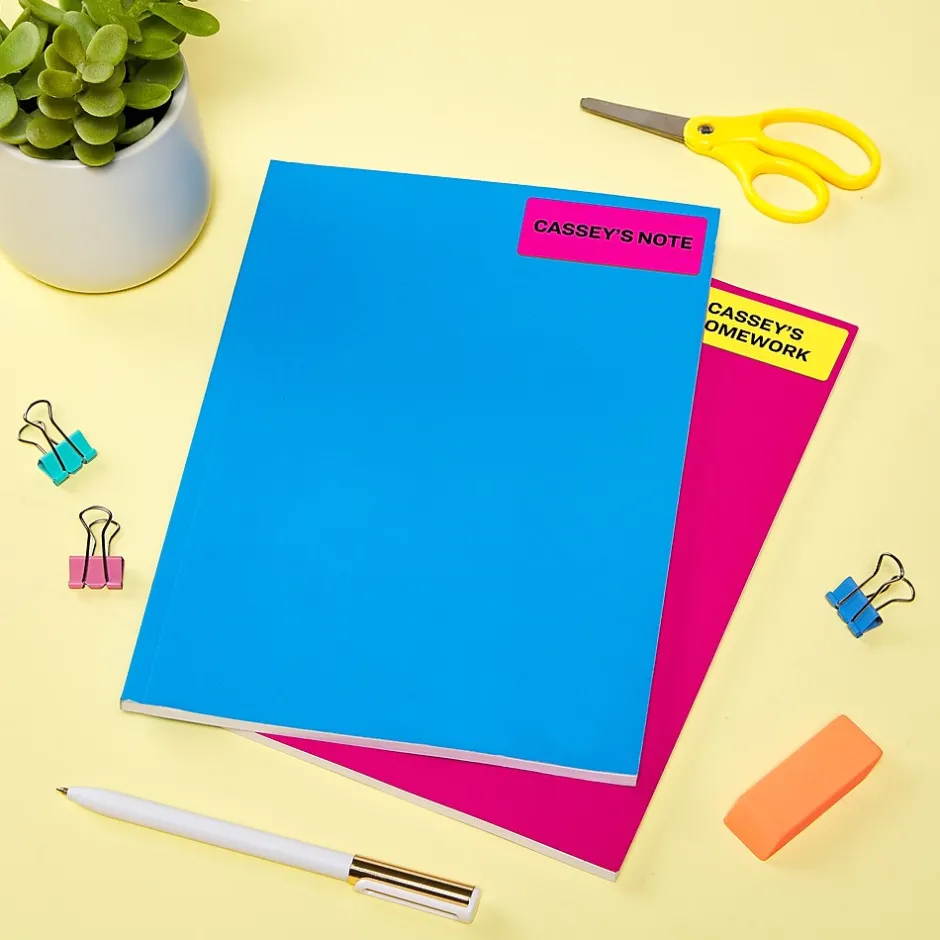 - The neon rectangle labels can stick and stay to almost any surface with its permanent adhesive hold