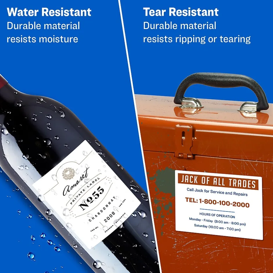 - Durable labels stand up to frequent use and resist moisture, scuffing, tearing and smudging